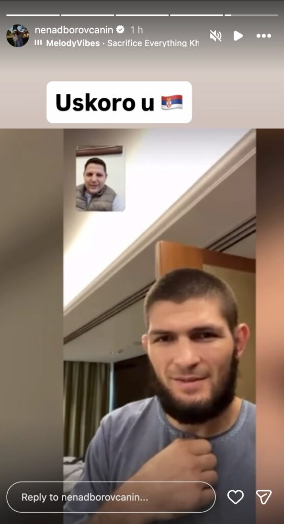 Dolazak slavnog Dagestanca najavio je predsednik Bokserskog saveza Srbije Nenad Borovčanin, koji je na društvenim mrežama objavio fotografije i snimke sa nekim od najvećih zvezda svetskog MMA. Posebnu pažnju izazvao je isečak iz video-razgovora sa Habibom Nurmagomedovim uz poruku: