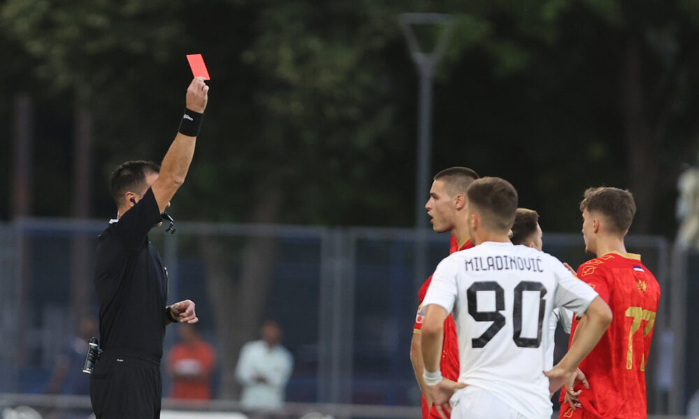 Sudija Aleksandar Živković pokazuje crveni karton Marku Dociću, Foto: MN Press