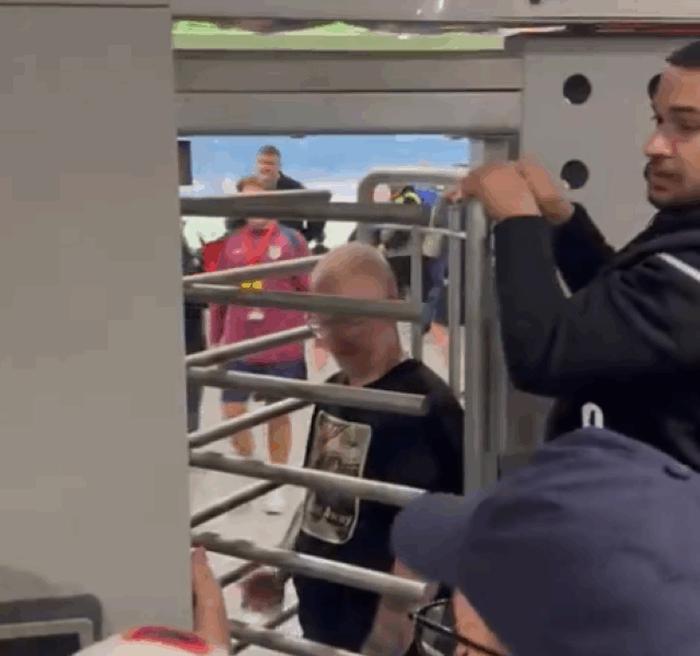 Dok je jedan od oko 2.000 gostujućih pristalica pokušavao da uđe na stadion, mehanizam rotirajućih vrata iznenada se blokirao, potpuno ga zarobivši unutra.