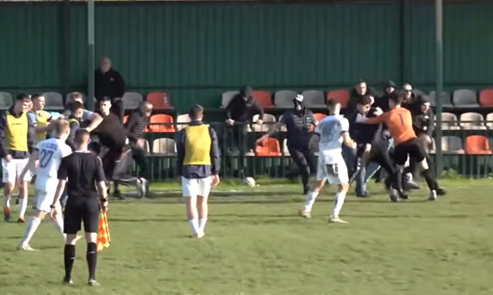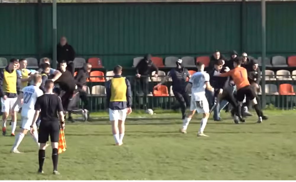Tuča igrača i navijača na meču Srpske lige, Printscreen: Youtube/Фудбалски савез Војводине