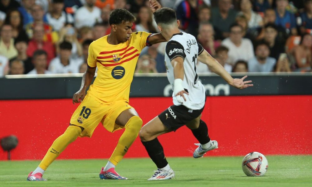 No, najpre su “slepi miševi” poveli, i to u 44. minutu kada je Ugo Duro postigao vodeći pogodak na “Mestalji”. Činilo se idealan momenat za gol, pred odlazak na odmor, ali je Barselona uspela da odgovori u šestom minutu nadoknade. Tada je Jamal namestio gol poljskom napadaču i na pauzu se otišlo sa 1:1.