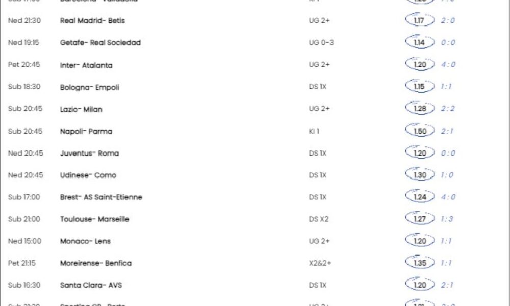 Zanimljivo je da je igrao fiks na HSV na kvotu 1,40 protiv Minstera (4:1) u Cvajti, a nije ni “bacio pare na Lacio” poto su ga Rimljani i Rosoneri ispoštovali na igru UG2+ na meču na kome je bilo nerešeno (2:2).