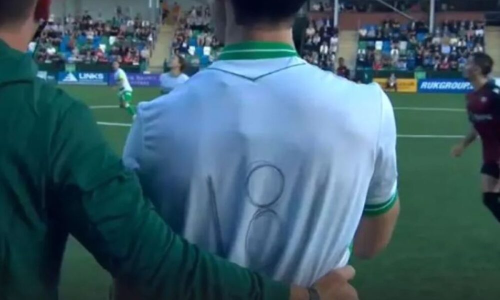 TNS officials at their Champions League qualifying match at home to North Macedonia side KF Shkendija had to improvise by drawing the number 18 onto the back of a shirt after Rory Holden got blood on his… pic.twitter.com/4YJf62iC26