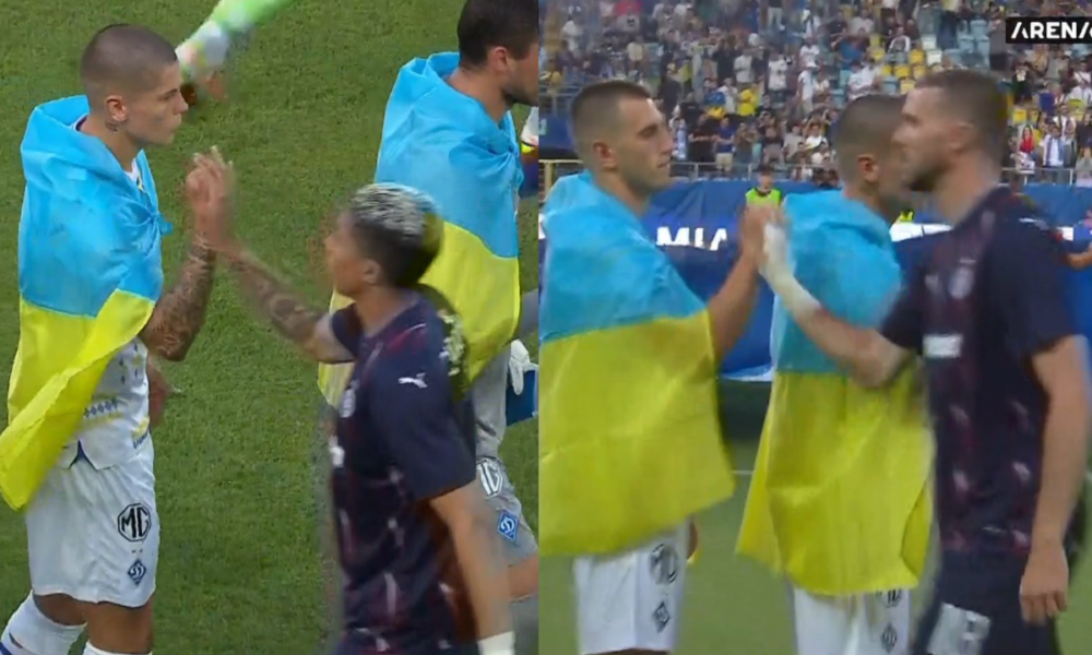 Kako bi UEFA gotovo sigurno reagovala da je došlo do kršenja protokola, Ukrajinci su odlučili da se pozdrave sa fudbalerima Partizana. Ukrajinci su bili ogrnuti zastavama svoje države na ceremoniji pred utakmicu.