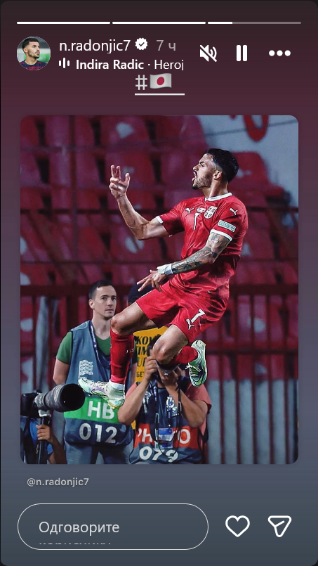 Radonjić, koji već duže vreme nije deo nacionalnog tima zbog narušenih odnosa sa selektorom, objavio je na Instagramu stihove pesme “Heroji” Indire Radić.