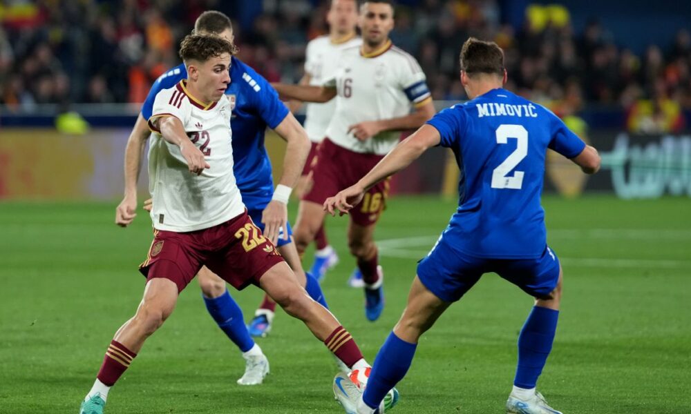 Prvi gol pao je u 16. minutu nakon odlične akcije: Lamin Jamal je uočio kretanje Fermin Lopeza između linija, uz asistenciju Aleksa Baenja razbijena je odbrana Srbije, a Mikel Ojarzabal rutinski završio za 1:0. Već u sledećem napadu Jamal je pogodio stativu, dok je Vanja Milinković-Savić ostao bez reakcije.
