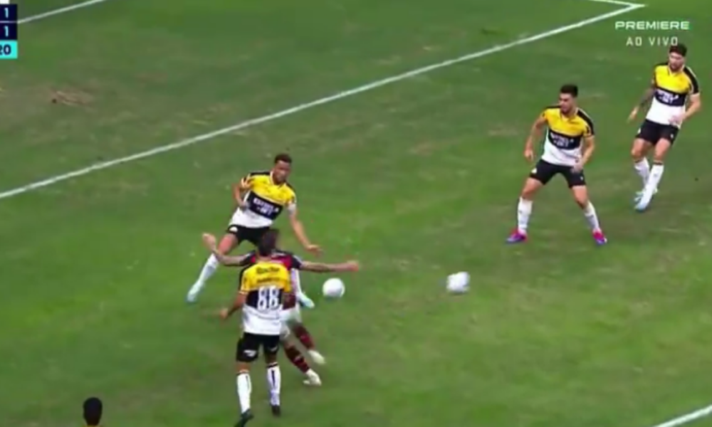 Naime, u kaznenom prostoru Krikiume su se našle dve lopte, a sudija iz nekog razloga prethodno nije prekinuo igru. Iako je morao. Kako je tekao napad Flamenga, jedan igrač gostujućeg tima Eden Citadin je jednom loptom pogodio drugu i tako prekinuo opasan prodor rivala.