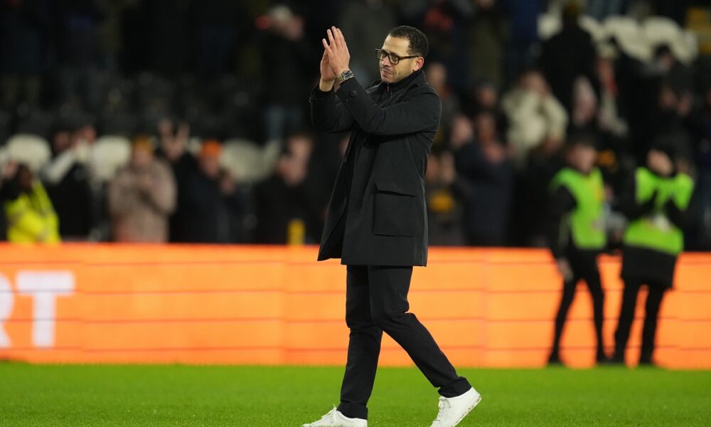 Chelsea's head coach Liam Rosenior walks off the pitch after the English FA Cup fourth round soccer match between Hull City and Chelsea in Hull, England, Friday, Feb. 13, 2026. (AP Photo/Jon Super)