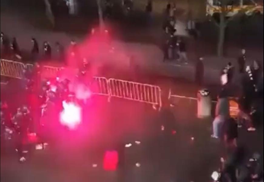 Brzo su im se pridružili i gostujući navijači koji su bili smešteni na drugoj strani stadiona, te se trčeći priključili sukobu sa policijom. Najvijači su gađali policiju sa pirotehnikom, te tako povredili veči broj ljudi.