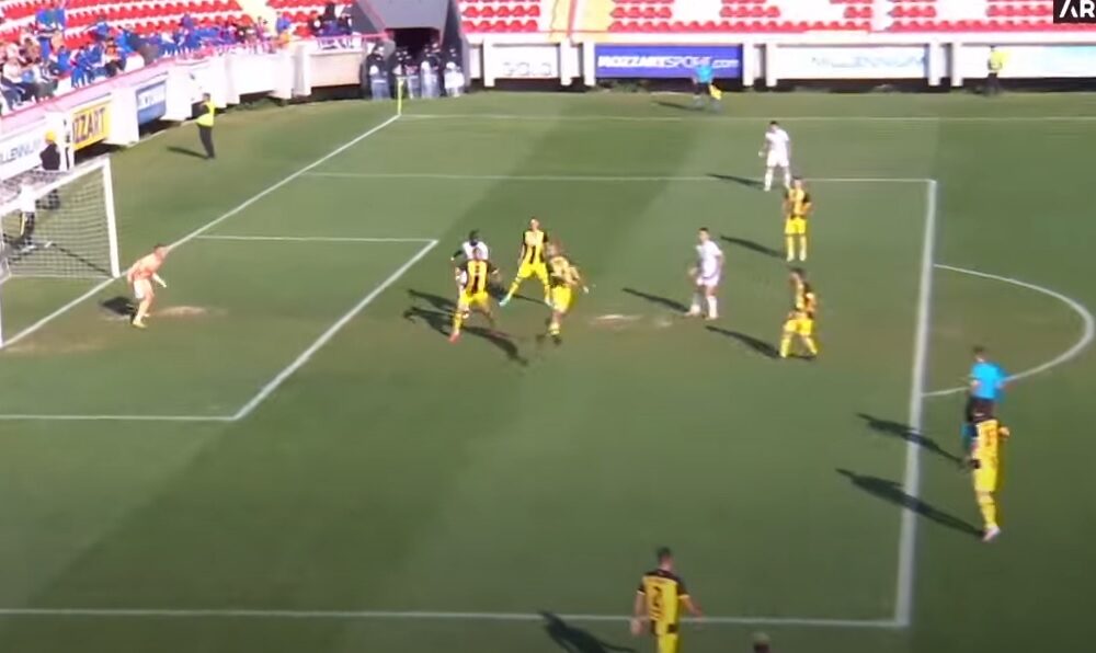 Defanzivac kruševačkog tima je bio “kratak” u skoku, pa umesto da izbaci loptu van šesnaesterca, očešao ju je temenom i ona je završila u golu. Da nije reč o njegovom golu, neki bi rekli da je ovo reakcija u maniru vrhunskih napadača.