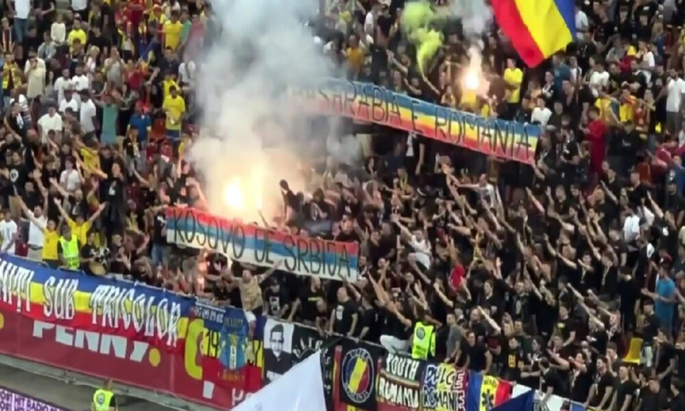 12.09.2023, Romania – Kosovo, Match was temporarily suspended due to banners by Romanian fans "Kosovo Je Srbija". https://t.co/Fjy3xrlEmQ pic.twitter.com/0X4Jhre5Lp
