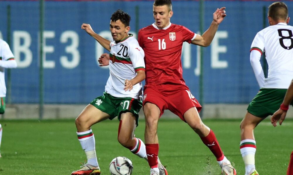 MIODRAG PIVAS, mladi fudbaler Srbije U17, na utakmici kvalifikacija za Evropsko prvenstvo protiv Bugarske, NEDZHIB HADZHA, na stadionu SC FSS. Stara Pazova, 24.10.2021. foto: Nebojsa Parausic Fudbal, UEFA kvalifikacije za Evropsko prvenstvo, Srbija, Bugarska