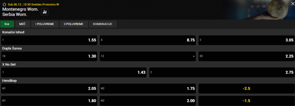 Kvote Soccerbeta najavljuju izjednačen, ali nimalo lak okršaj za Srbiju. Crna Gora je blagi favorit sa kvotom 1.55, dok je trijumf Srbije na 3.05. Remi je postavljen visoko, na 8.75. Za dodatno osiguranje tu je i dupla šansa – 1X na Crnu Goru je 1.30, dok je X2 na Srbiju 2.25.