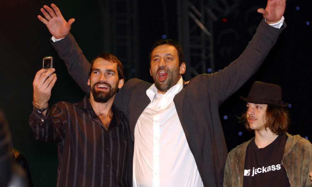 KOSARKA - Koncert ispred Skupstine Srbije povodom oprostaja Vlada Divca. SCOTT POLLARD - Skot Polard, NBA kosarkas, VLADE DIVAC i sin mu LUKA.Beograd, 22.09.2007. photo:N.Parausic