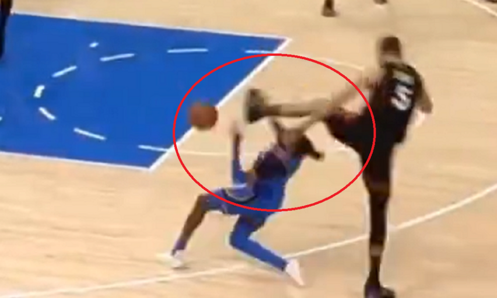 Džo je podigao Jovića na fintu šuta, a mladi talenat je skočio u nebesa. Kada je Oklahomin bek krenuo da ga prođe, Jović je nogom nokautirao protivnika koji je momentalno završio na parketu.