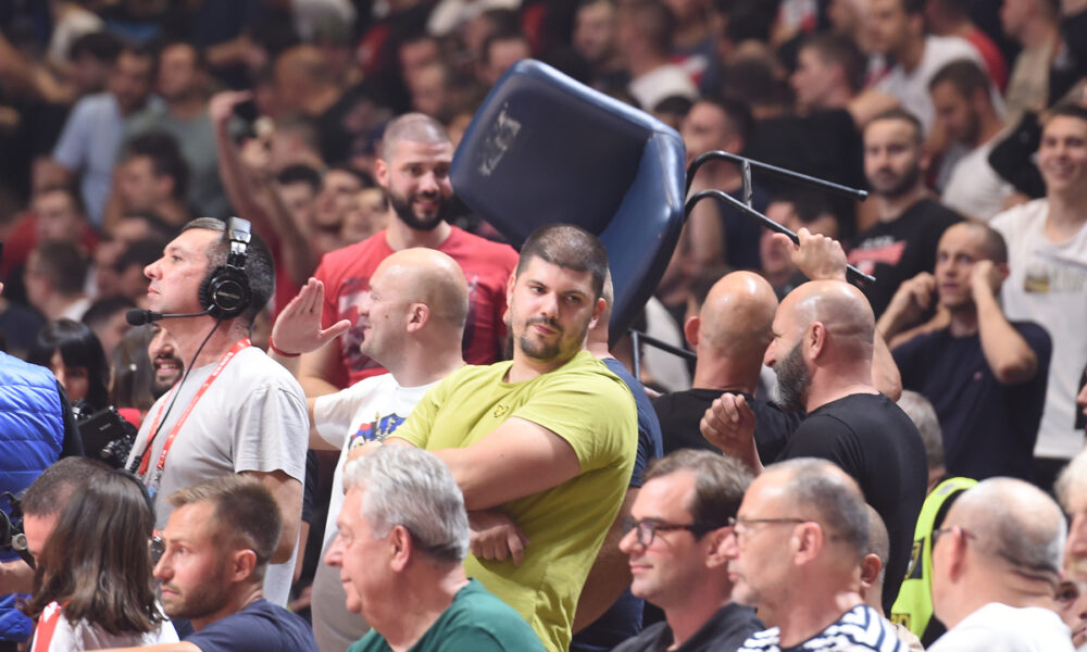I jedan od njih je rešio da tu blizinu i iskoristi. Naime, fotograf sa lica mesta “uhvatio” je čoveka u prvom redu “Pionira” kako je zamahnuo stolicom. Ostala je misterija na koga ili šta, ali je definitivno da u civilizovanom svetu stolici nije mesto u vazduhu, već na podu i na njoj se sedi.