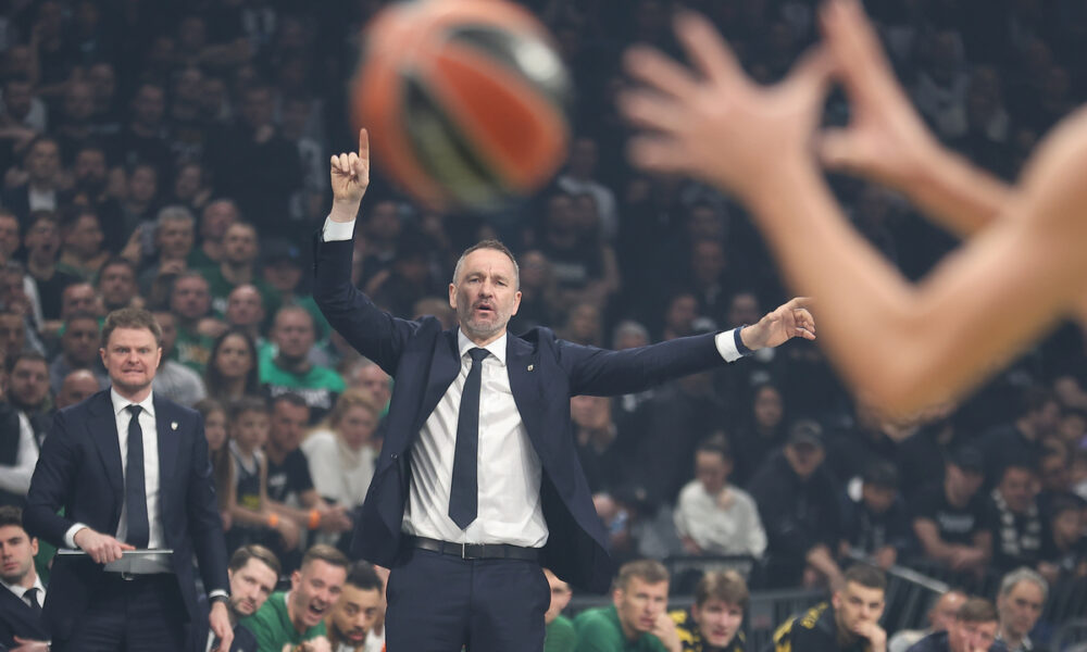 Trener Partizana na utakmici Evrolige protiv Zallgirisa u hali Beogradska Arena, Beograd 10.04.2026. godine Foto: Ivica Veselinov / MN PRESS KOSARKA, BASKETBALL, EVROLIGA, EUROLEAGUE, PARTIZAN, ZALGIRIS
