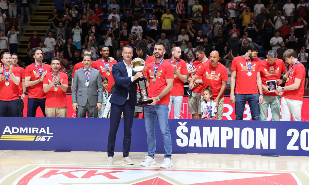 Košarkaši Crvene zvezde proslavili su devetu uzastopnu, a 24. titulu u nizu u košarkaškoj Superligi Srbije, dan posle kontroverzne utakmice sa Partizanom u finalu plej-ofa domaćeg prvenstva.