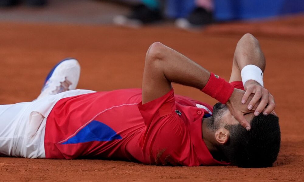 Novak Djokovic was shaking after winning the gold medal match against Carlos Alcaraz at the Olympics.