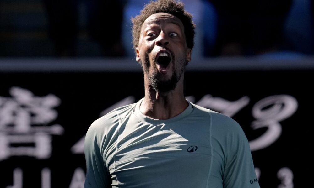 Gael Monfils’ reaction after becoming the oldest man in history to reach the Round of 16 in Miami.