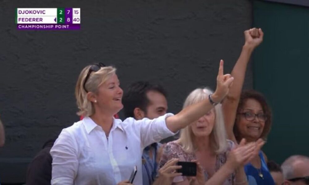 Teško da postoji osoba u Srbiji ili teniski fan koji ne pamti legendarni preokret Novaka Đokovića u finalu Vimbldona 2019. godine protiv Rodžera Federera, kao i ovu gospođu sa slike koja je od tog momenta postala “mim” na društvenim mrežama.